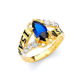 Blue & White CZ Personalized Ladies Ring in 14K Gold