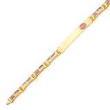 Fancy Ladies Border ID Bracelet In 14K Tri-Color Gold