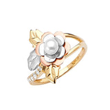 White CZ and Pearl Flower Ladies Ring in 14K Tri-Color Gold