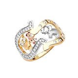 White CZ Symbols Ladies Ring in 14K Tri-Color Gold