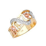 White CZ Symbols Ladies Ring in 14K Tri-Color Gold