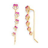 Crawler Earrings with Pink & White CZ in 14K Gold