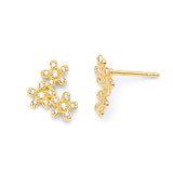 Flower Stud Earrings with White CZ in 14K Gold and Butterfly Backing