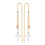 Cross Tassel Earrings in 14K Tri-Color Gold