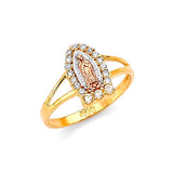 White CZ Guadalupe Ladies Ring in 14K Tri-Color Gold
