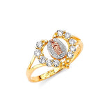 White CZ Guadalupe Ladies Ring in 14K Tri-Color Gold