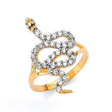 White CZ Snake Ladies Ring in 14K Two-Tone Gold
