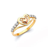 White CZ Heart Ladies Ring in 14K Tri-Color Gold