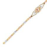 Mexican White CZ Quinceañera Heart Bracelet In 14K Tri-Color Gold