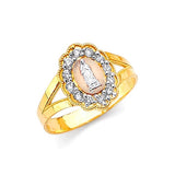 White CZ Guadalupe Ladies Ring in 14K Tri-Color Gold