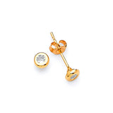 Solitaire Stud Earrings with White CZ in 14K Gold and Butterfly Backing
