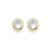 Solitaire Stud Earrings with White CZ in 14K Gold and Butterfly Backing