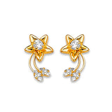 Crawler Stud Earrings with White CZ in 14K Gold and Butterfly Backing
