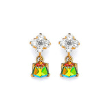 Dangling Earrings with White CZ and Moon Stone in 14K Gold and Butterfly Backing