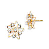 Flower Stud Earrings with White CZ in 14K Gold and Butterfly Backing