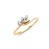 White CZ Flower Ladies Ring in 14K Two-Tone Gold