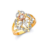 White CZ Flower Ladies Ring in 14K Tri-Color Gold