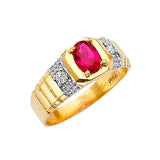 Red & White CZ Mens Ring in 14K Two-Tone Gold