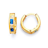 Huggie Earrings with Blue & White CZ in 14K Gold