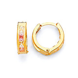 Huggie Earrings with Pink & White CZ in 14K Gold