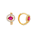 Huggie Earrings with Red & White CZ in 14K Gold