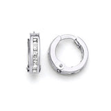 Huggie Earrings with White CZ in 14K White Gold
