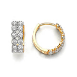 Huggie Earrings with White CZ in 14K Two-Tone Gold