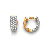 Huggie Earrings with White CZ in 14K Two-Tone Gold