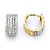 Huggie Earrings with White CZ in 14K Two-Tone Gold
