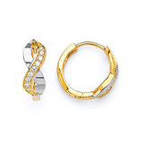Huggie Earrings with White CZ in 14K Two-Tone Gold