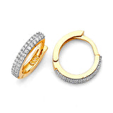Huggie Earrings with White CZ in 14K Two-Tone Gold