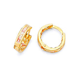 Huggie Earrings with Pink & White CZ in 14K Gold