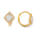 Huggie Earrings with White CZ in 14K Gold