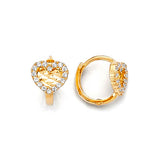 Heart Huggie Earrings with White CZ in 14K Gold