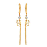 Butterfly Tassel Earrings with White CZ in 14K Gold