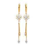 Flower Tassel Earrings with White CZ in 14K Gold