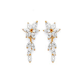 Flower Drop Earrings with White CZ in 14K Gold and Butterfly Backing