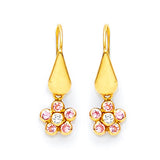 Flower Drop Earrings with Pink & White CZ in 14K Gold