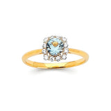 Blue & White CZ Center-Stone Ladies Ring in 14K Gold