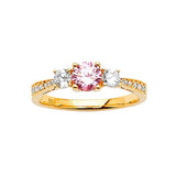 Pink & White CZ Three-Stone Ladies Ring in 14K Gold