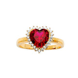 Red & White CZ Center-Stone Ladies Ring in 14K Gold