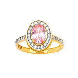 Pink & White CZ Center-Stone Ladies Ring in 14K Two-Tone Gold
