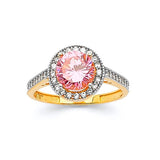 Pink & White CZ Center-Stone Ladies Ring in 14K Two-Tone Gold