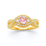 Pink & White CZ Center-Stone Ladies Ring in 14K Gold