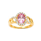 Pink & White CZ Center-Stone Ladies Ring in 14K Gold