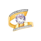 Purple & White CZ Center-Stone Ladies Ring in 14K Two-Tone Gold