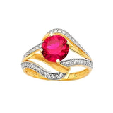 Red & White CZ Center-Stone Ladies Ring in 14K Two-Tone Gold