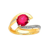 Red & White CZ Center-Stone Ladies Ring in 14K Two-Tone Gold