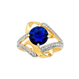 Blue & White CZ Center-Stone Ladies Ring in 14K Two-Tone Gold