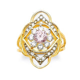 Pink & White CZ Center-Stone Ladies Ring in 14K Gold